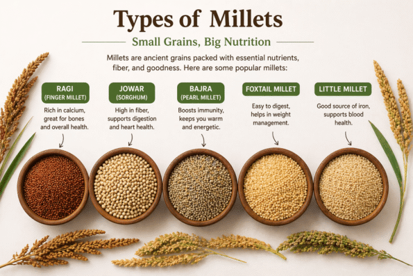 Millets are rich in fiber, minerals, and protein, making them a nutritious alternative to refined rice.